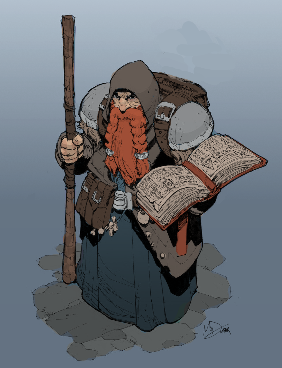 Garwin, the duergar: Voice like a drum in a barrel. Finds the book before the meaning. Efficient in breaking and binding, booming blades.