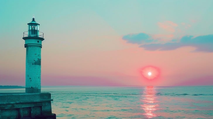 Find the sea, and the lighthouse.