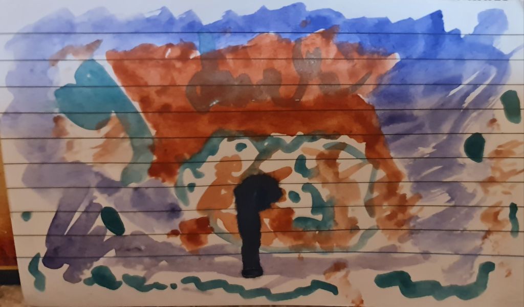 A work of elemental tension and renewal, Der Spiegel im Spiegel unfolds as a psychic landscape between descent and illumination. Broad, gestural fields of brown, blue, and yellow trace a vertical journey through shadow, motion, and light — the passage from matter to reflection to spirit. The brown mass anchors gravity and memory; the blue currents dissolve boundaries; the yellow core burns like an inner sun, radiant yet wounded.
